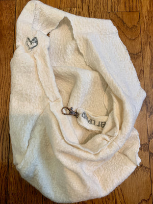 4. XXS white super petite tiny teacup co-op refurbished carrier. This is an older hand made version that looks like boiled wool. It is new but has been washed. It’s for someone who wants their tiny teacup as high as possible basically on this neck. It is smaller than our child size sling.
