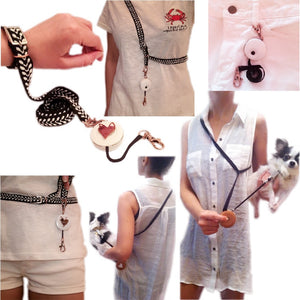Patented soft Leather or Bungee fabric Retractable leash wears 4 ways on Wrist, Waist, Cross body, Clip on belt loop; Hands Free Comfy Dog Leash comes in 2 parts (retractable & bungee) that can be used as 2 separate leashes if desired. Clip retractable leash part to your sling harness clip for a hands free walk or wrap bungee retractable through the bungee wrist loop for a cross body hands free experience without a sling. Wrap around wrist for a quick walk, loop around the waist for a dog run. Enjoy a unique ergonomic experience. |